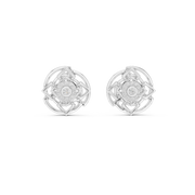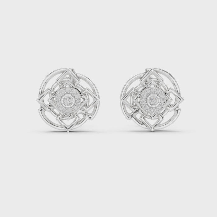 Designed with a striking square-inspired silhouette, these earrings feature layered openwork detailing that frames a brilliant diamond centre, surrounded by delicately set diamonds for added depth and shine.