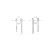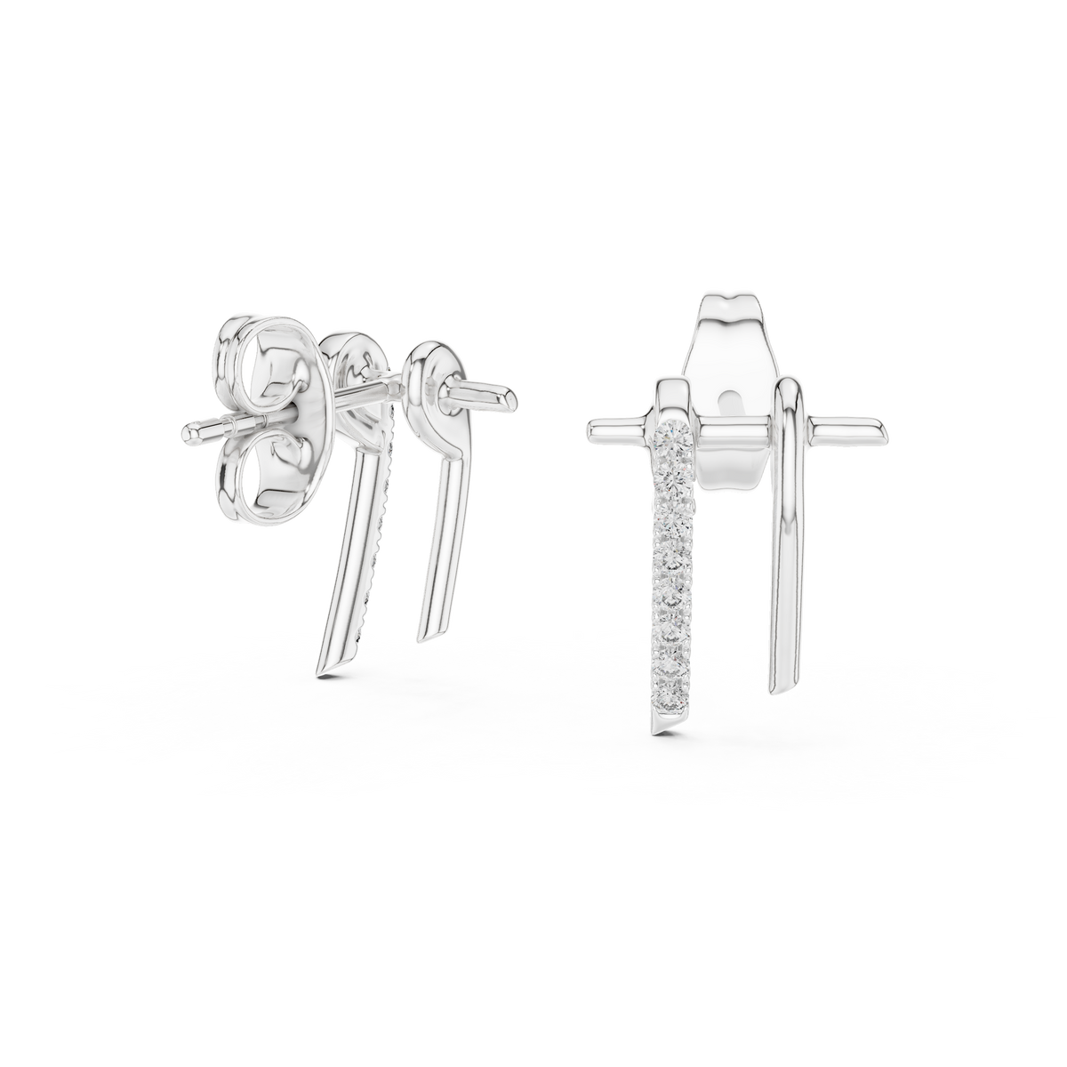 Designed with a graceful curved arc silhouette, these studs offer a contemporary edge while maintaining everyday elegance. One side features a smooth polished finish, while the other is highlighted with a row of shimmering diamonds—creating a beautiful balance of shine and structure.
